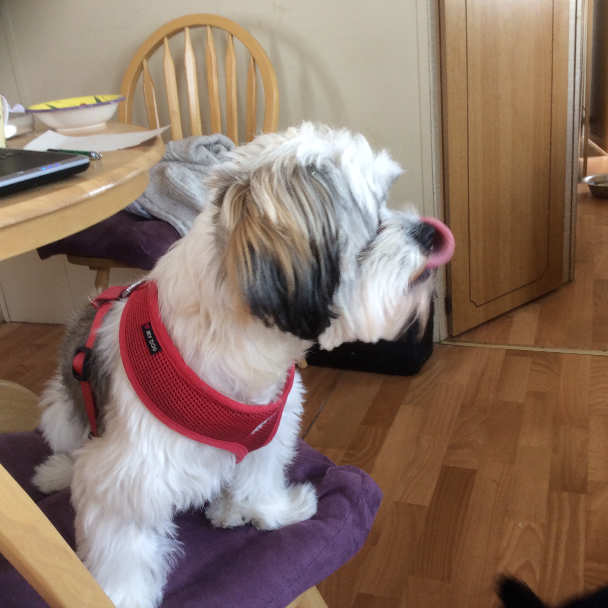 Lottie licked the boy’s face as he fed her some of his breakfast.