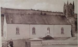 The inside of the chapel was cast in shadows and smelled of candle wax, incense and men’s sweaty feet. I looked about me curiously. Teacher had told us the old church had been built when Lord Erin saw the catholic people praying in the open. it had had been built in such a way that the women went in one door at the front of the chapel into the woman’s aisle where the stone christening font and the confessional boxes were with the purple blinds behind where the priest sat to hear your sins.. And the men went in the other side where the Tower was that held the big bell.