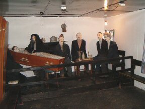 The nephew returned to the bedroom, lifted the worn carpet, opened the flap and the late Michael was lowered in his coffin to the ground floor. He was gently laid to rest in the family grave happily undisturbed in his coffin, thanks to the funeral hole.