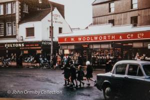 It made me think of the Pick N Mix counter – just inside Woolworth’s doors in Castle Street. I can still see the girl behind the counter lift the tilted lids of the glass fronted boxes and dig deep into the multi-coloured array of dolly mixtures, black and white brandy balls and rainbow coloured mixtures.
